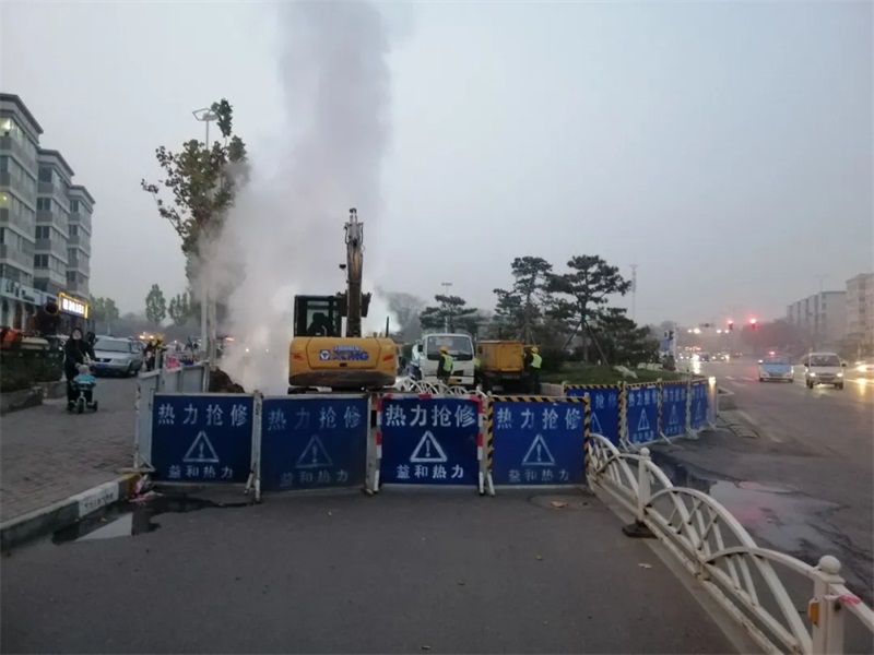从现场负责人张翔处获悉,由于管道属于供热主管道,在管内水温及水压的作用下,导致此次漏水点较大。为了保障工作人员的人身安全,需要将管内水压降低一部分,这样工作人员才能下坑进行抢修,争取在最短的时间内完成管网堵漏作业,尽全力减小对周边热用户的影响。